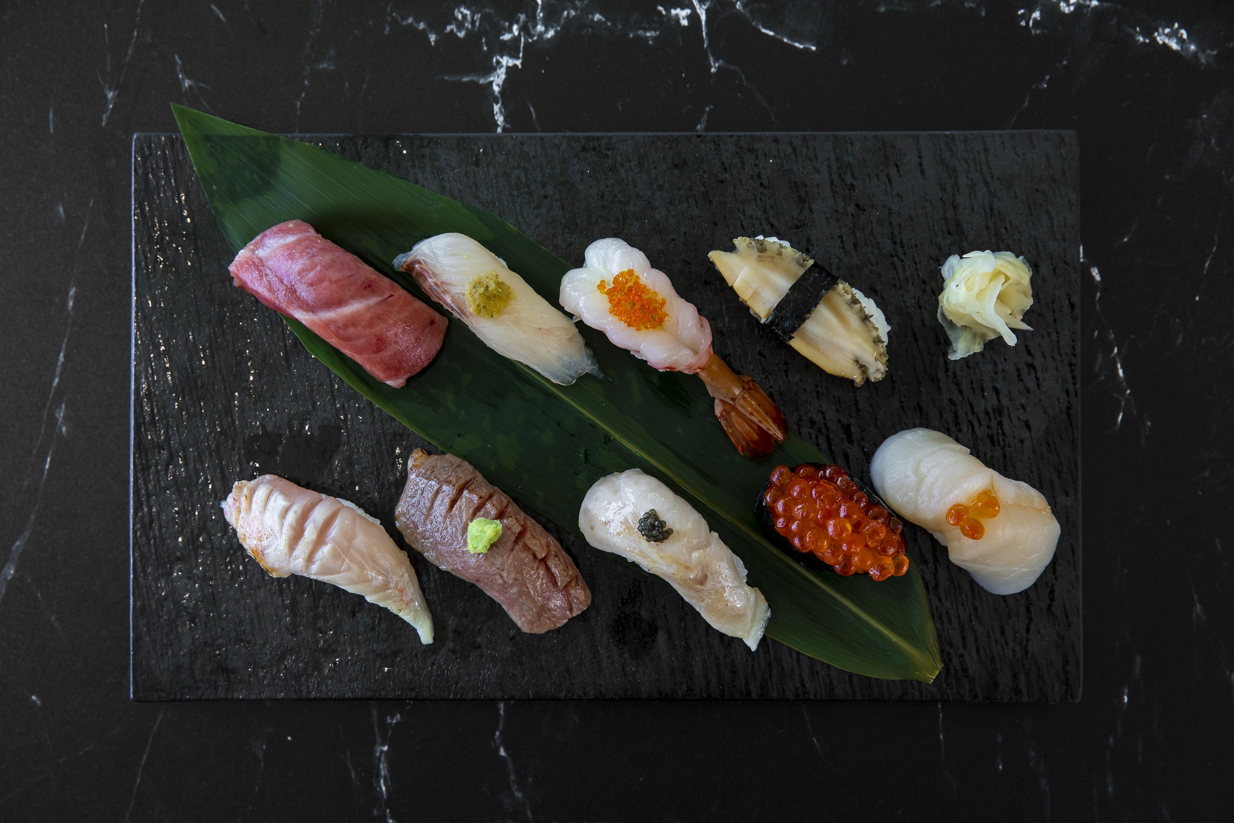 composed of a small base of rice topped with a strip of fresh fish or other ingredient. / two pieces per order